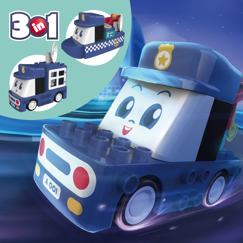 萌車小隊,是一款智能電子積木。采用三合一設計,一輛萌車,可拼搭成3種不同造型。擁有豐富的主題場景,激發寶寶自由想象和積極探索。配套動感驅車座,內含電子模塊,可以360度動感轉向,還能播放音樂音效,讓寶寶拼好的積木動起來。