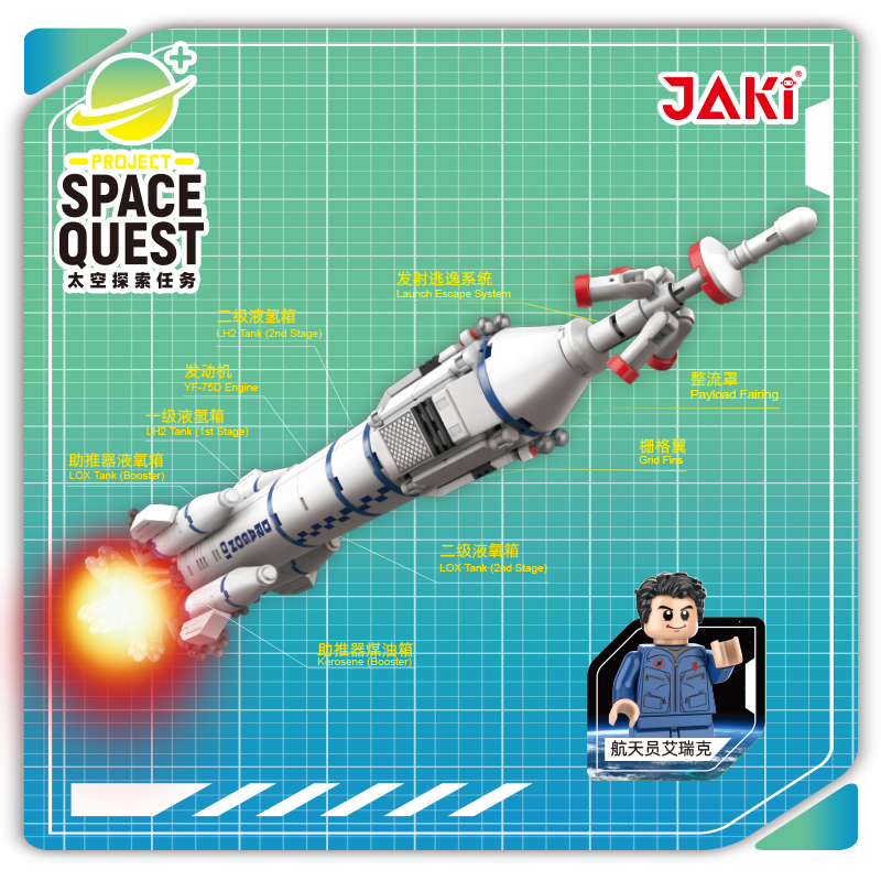 運(yùn)載火箭能將各種航天器推向太空。神龍一號(hào)運(yùn)載火箭通體潔白,全高約36cm,火箭總體由四個(gè)液體助推器、芯一級(jí)火箭、芯二級(jí)火箭、整流罩和逃逸塔組成。配套有火箭噴射底座,尾部?jī)?nèi)部LED燈可模擬火箭點(diǎn)火狀態(tài),配套一名航天員人仔,為你再現(xiàn)火箭升空的壯觀場(chǎng)景!