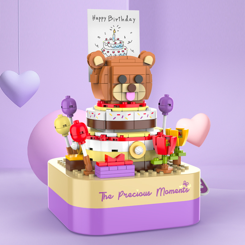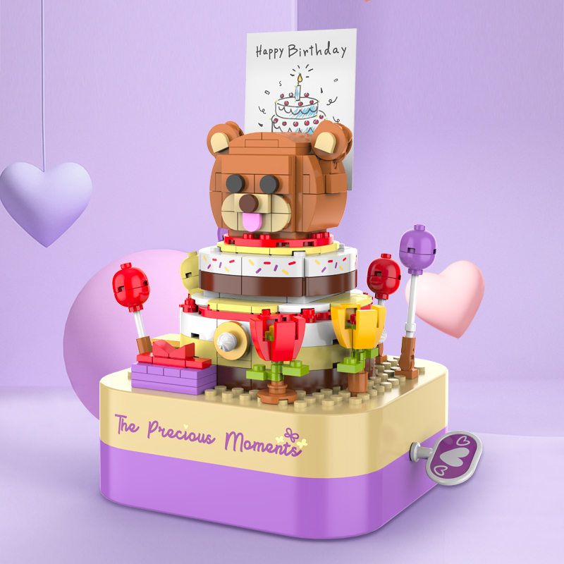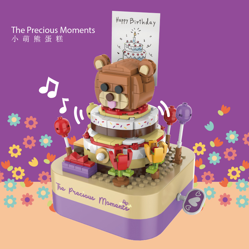 將積木與音樂盒完美結合,好玩又時尚。純機械動力設計更環保,音樂盒發條轉動帶動蛋糕旋轉,益智拼搭,時尚美觀,還能充當家居精品擺件。