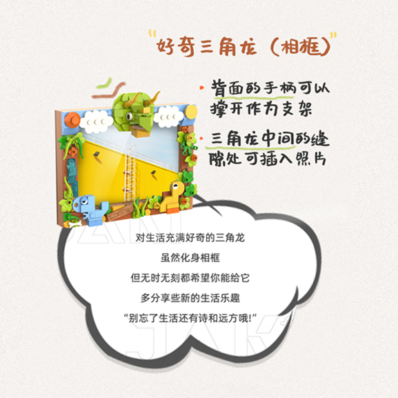 對生活充滿好奇的三角龍, 雖然化身相框, 但無時無刻都希望你能給它, 多分享些新的生活樂趣, “別忘了生活還有詩和遠(yuǎn)方哦!"